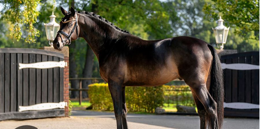 This strong and elegant stallion was licensed in Neumünster in 2019 at just 2½ years old and went on to successfully complete his 35-day performance test in Denmark in November 2021. He is currently in training with Danish championship rider Jean van Deventer, where he is developing his promising young dressage career. Heaven Dancer is now competing successfully at Medium Level, with particular highlights being his flawless conformation and powerful, expansive canter.